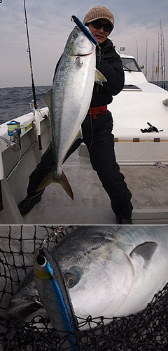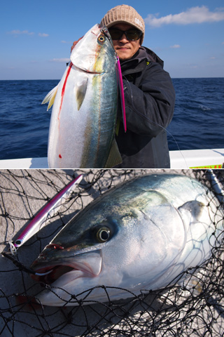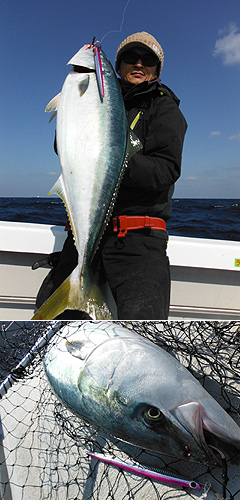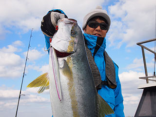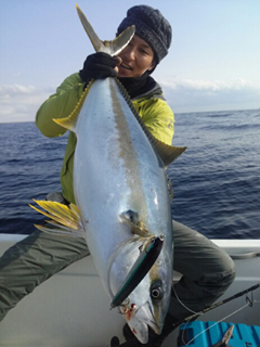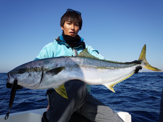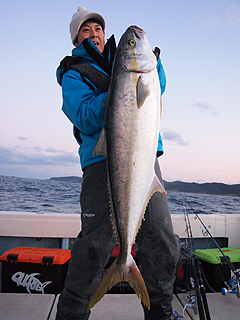 - フィッシングワールド博多駅前店のスタッフであり、九州を代表するレディースアングラー藤本様より、玄界灘でキャッチされた寒鰤のお写真をいただきました。