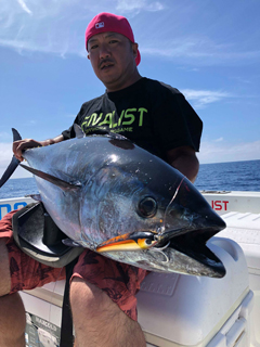 守谷様。Rampage175FH (ラップ パープルーバック)にて22kgのキハダをキャッチしていただきました。