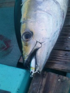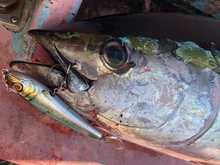 130mmのシンキングプラグ(プロト)にてキハダをキャッチ。